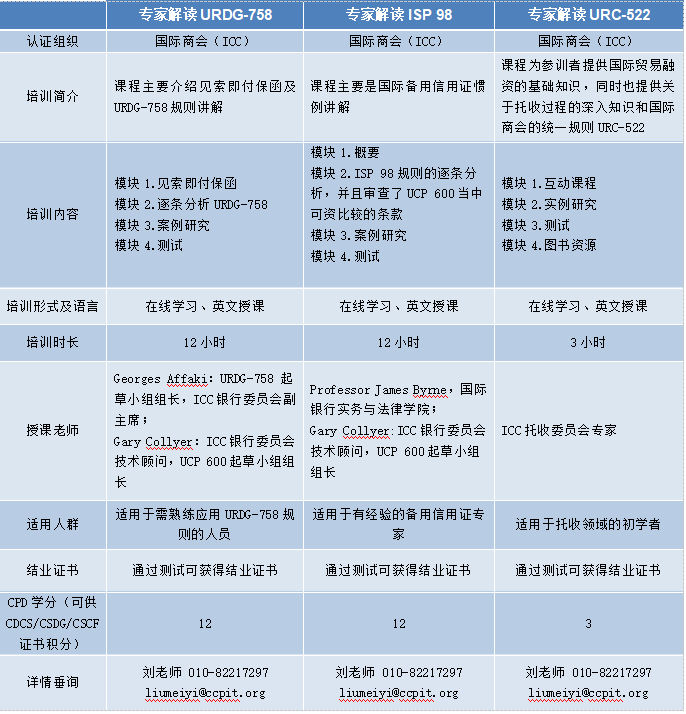 “专家解读国际规则系列课程”由相关规则起草者亲自授课、对规则本身及案例进行深入解读,通过线上全英文培训+考核形式,帮助国际贸易金融及国际结算从业者深入学习、更好的掌握相关国际结算工具及其对应的国际规则。
